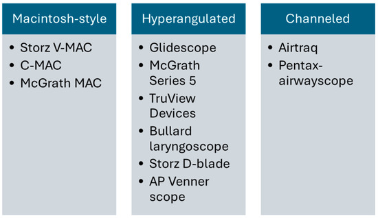 Types of video laryngoscopies and their examples.