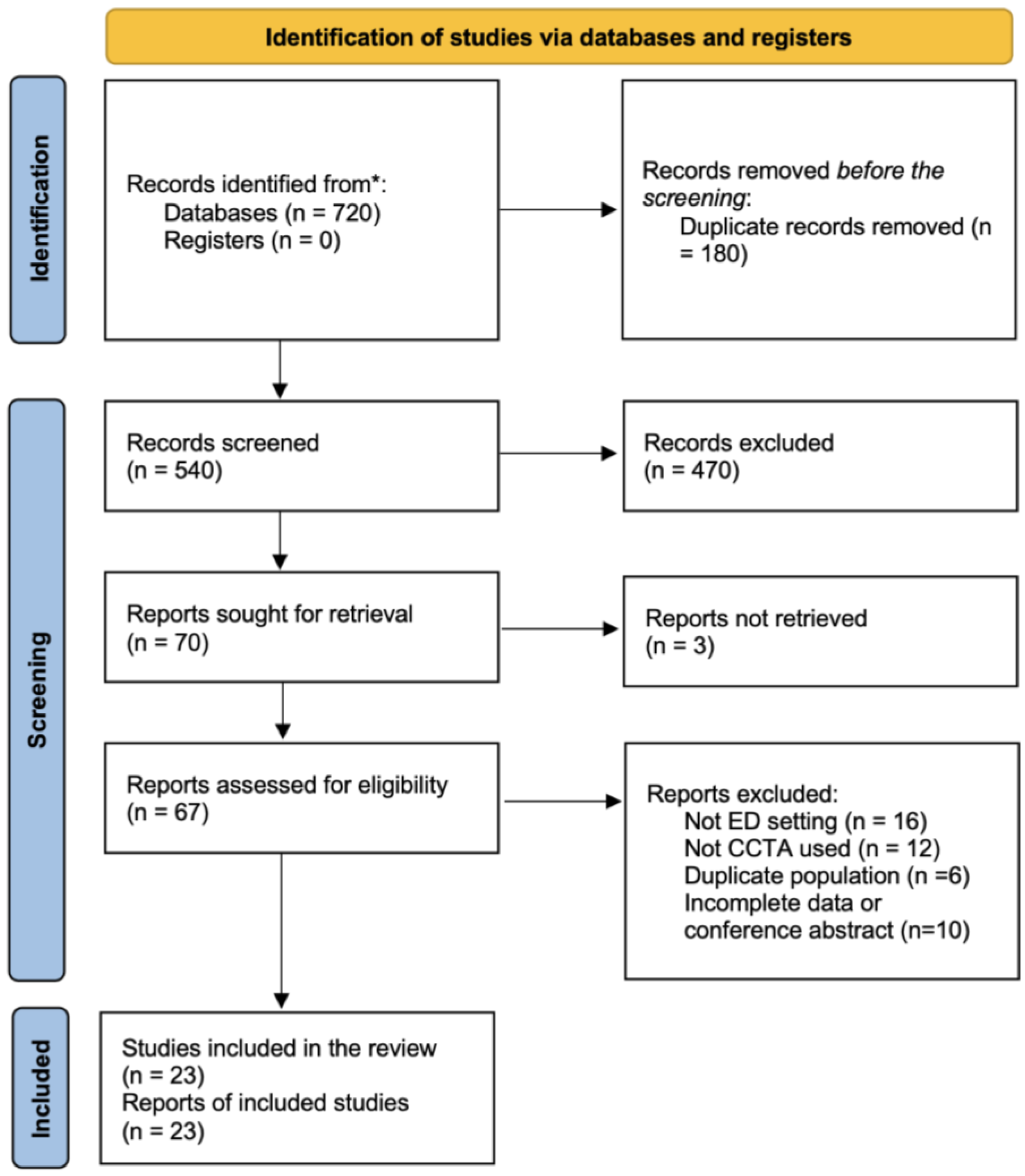 APA StyleIrannejad, K., Hubbard, L., Narashim, A., Mora, R., Iskander, B., Punnanithinont, N., Ichikawa, K., Kinninger, A., Lakshmanan, S., Roy, S., Chang, D., Budoff, M., & Krishnan, S. (2025). Coronary CT Angiography for Acute Chest Pain in the Emergency Department: A Systematic Review of Clinical Utility. Emergency Care and Medicine, 2(3), 46. https://doi.org/10.3390/ecm2030046