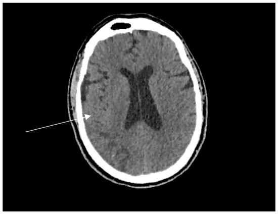 Non-contrast computed tomography (CT) of the head demonstrated an evolving acute infarct in the right posterior parieto-occipital region with poorly defined hypodensity, white matter oedema, and mild mass effect (