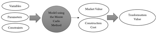 Once the variables, parameters, and constraints are defined, the Monte Carlo model allows the calculation of the Market Value (MV), the Construction Costs (CC), and consequently the Transformation Value (TV). The core research question is whether the transformation of these areas is economically viable for both private developers and public administrations, taking into account their respective interests in the transformation process.