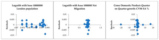 During this study period, net migration constituted 3% of London’s population, which is a considerably low population proportion and likely to be attributed to the unaffordability of housing and low median pay in London as previously suggested by the findings of [12,19,34], while high migration outflows were substantial further to the Brexit referendum based on the studies of [35].