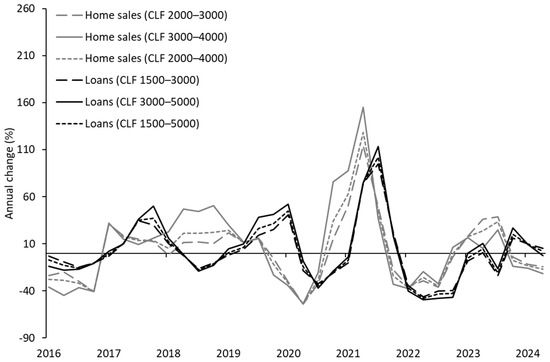 In conclusion, considering that the data provided by the Chilean Chamber of Construction pertain to preliminary sale agreements, it is recommended as an extension of this study to examine the influence of mortgage rates on withdrawal rates. This entails estimating the impulse–response functions using sales figures adjusted for cancellations and comparing them with the gross amount of sales for each quarter. Such an approach could potentially reveal the heightened sensitivity of the housing market to fluctuations in mortgage rates, indicating that the findings of this study may be conservative.