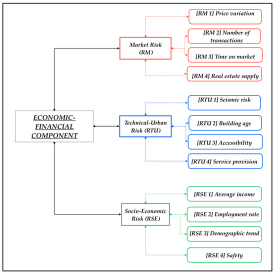 The evaluation of the Economic-Financial component is accomplished through an accurate analysis of real estate investment risk. Therefore, it is essential to define the factors that contribute to determining risk conditions in the real estate sector. With reference to a generic real estate investment aimed at urban transformation, whether implemented by public administrations or private investors, it is possible to identify three main risk components: