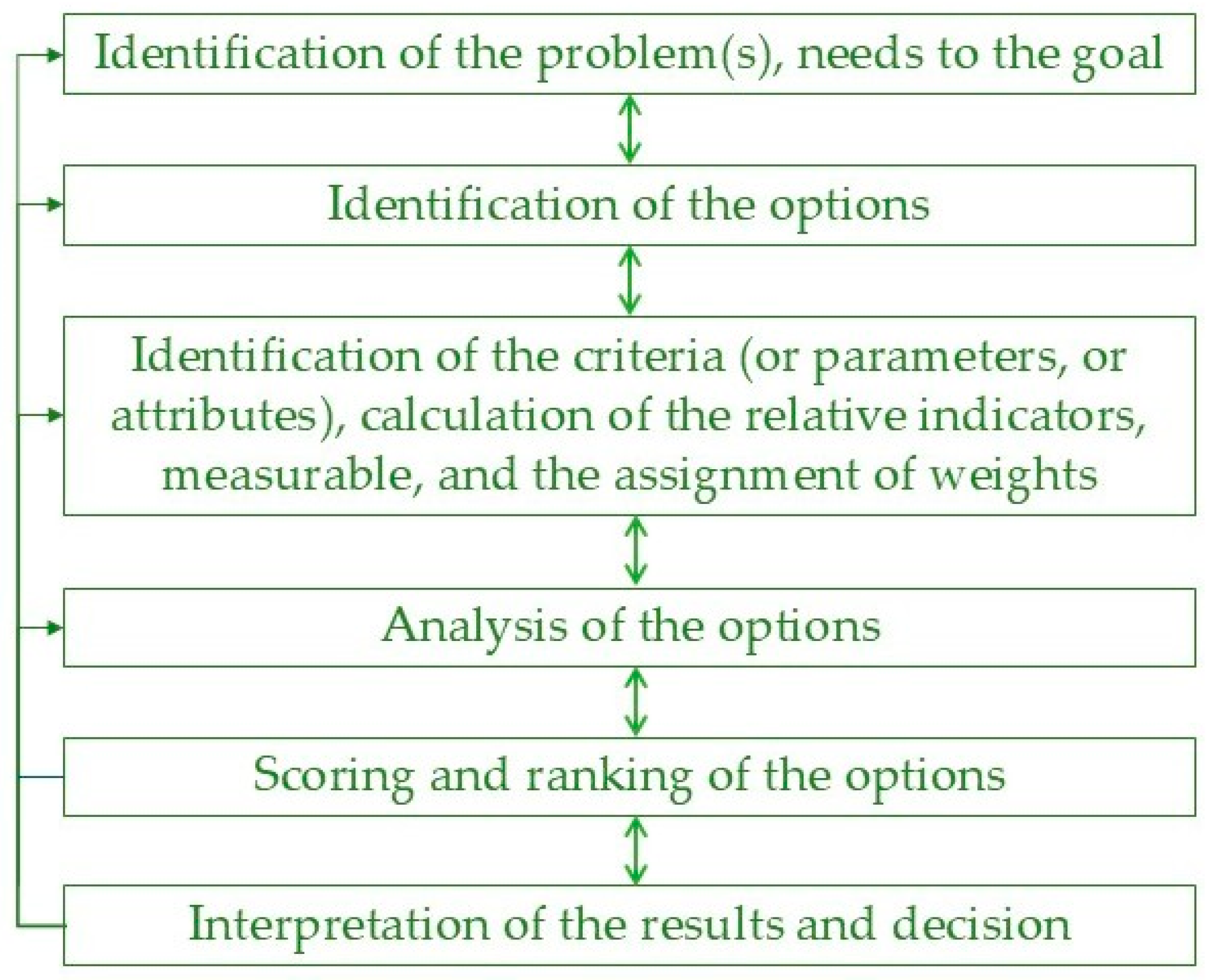 The presence of differences in the model’s output, sometimes even conflictual, for example, the preferable scenario under the economic viewpoint can be less preferable in comparison to the environmental or social ones. In this regard, in recent years, a line of research has developed studies dedicated to exploring methodologies—in particular those of a multi-criteria nature—for the harmonization of outputs produced by different analyses. Furtherly, different results derive from different objects and targets assumed for the analysis;