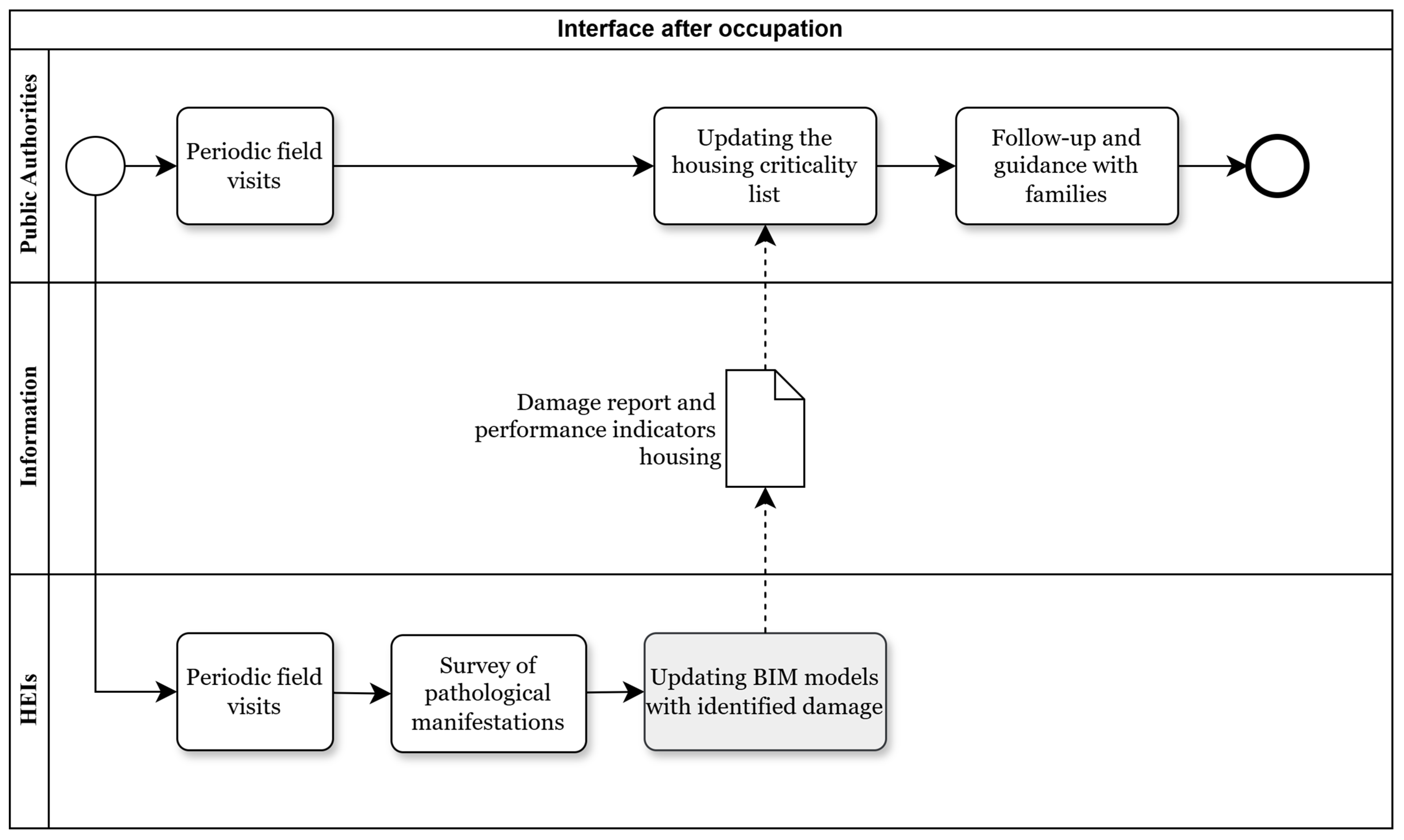 It is important to highlight that house maintenance must be planned and executed by the residents, but the public agencies can support this process by providing updated BIM models and inspection reports. Also, this phase is crucial to ensure the sustainability of the adopted housing improvements, aligned with Gonzalez-Caceres et al. [