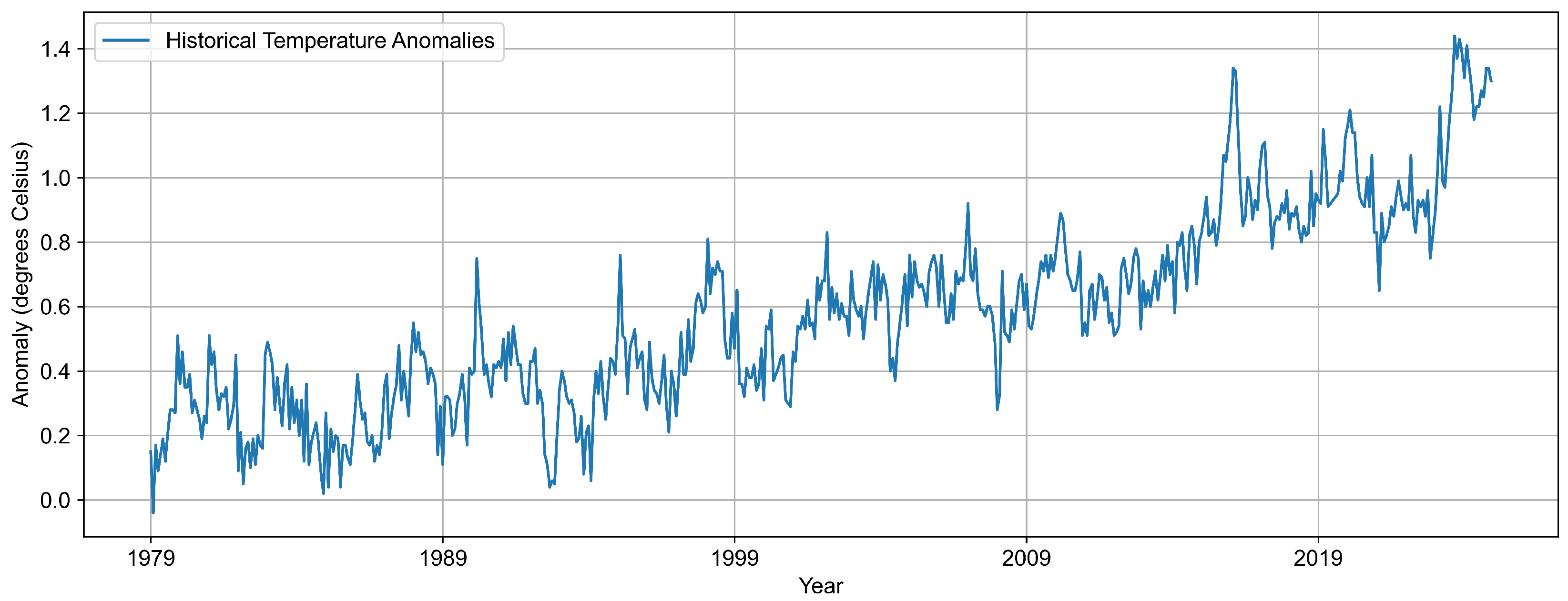 To assess extrapolation realism and validate model behavior in near-contemporary periods, we conducted pseudo-future experiments using recent origins (2005, 2010, 2015, 2020) with horizons of 5, 10, and 15 years. This approach provides a critical bridge between historical hindcasts and true future projections by testing model performance on data that was genuinely unknown at the time of model fitting but is now observable through 2024. The "evaluate_pseudo_future()" function implemented this by fitting each model using data only through December of the origin year, then generating forecasts for the specified horizon and comparing against observed temperature anomalies. For example, a model fitted through 2010 would forecast 2015, 2020, or 2025 conditions, with the first two scenarios providing validation against observed data. This methodology ensures that models demonstrating good pseudo-future performance are more likely to provide reliable extrapolations beyond the observational record, addressing concerns about purely retrospective model evaluation that may not reflect true forecasting skill.
