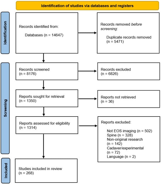 Therefore, the objective of this scoping review is to map and summarize the existing literature on non-spinal clinical applications of EOS imaging. Specifically, the objectives of this review were to do the following: