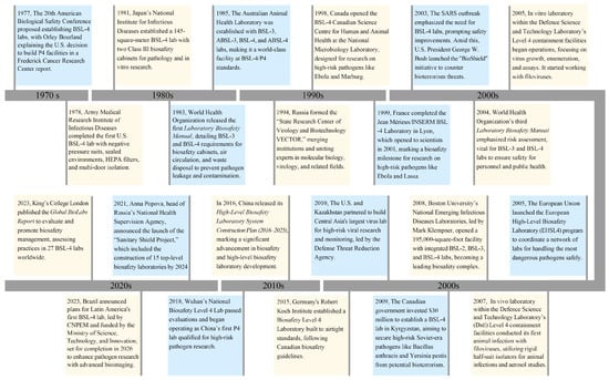 This paper reviews the development of high-level biosafety laboratories worldwide from the perspective of the history of science and technology, focusing on the importance of these laboratories in biosafety and global health management. By comparing the development paths and legal regulations of biosafety laboratories in different countries, the paper reveals how high-level biosafety laboratories effectively respond to biosafety threats and biological risks. The selection of laboratories in this study is based on their historical significance, contributions to global health security, and representation of diverse regional contexts, ensuring a balanced analysis of key milestones in biosafety development. By comparing the development paths, operational practices, and legal regulations of biosafety laboratories in different countries, the paper reveals how these facilities effectively respond to biosafety threats and biological risks.