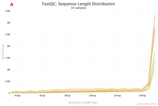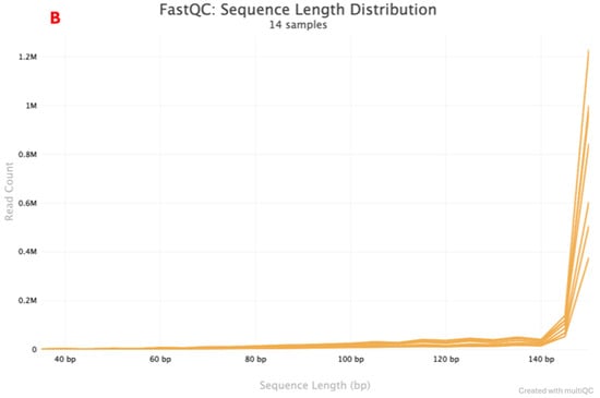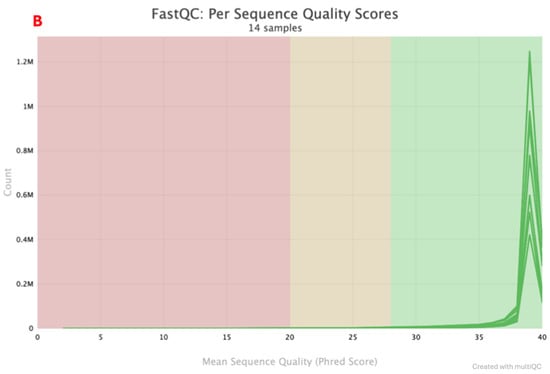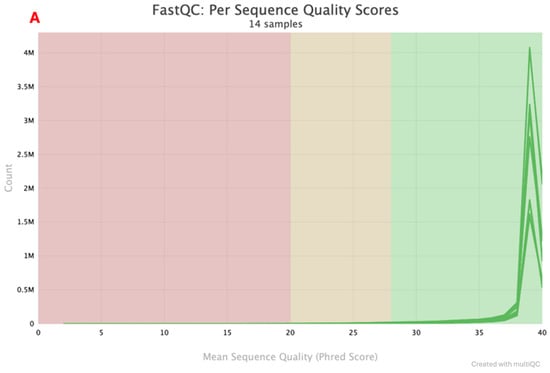- Ewels, P.; Magnusson, M.; Lundin, S.; Käller, M. MultiQC: Summarize Analysis Results for Multiple Tools and Samples in a Single Report. Bioinformatics 2016, 32, 3047–3048. [Google Scholar] [CrossRef]