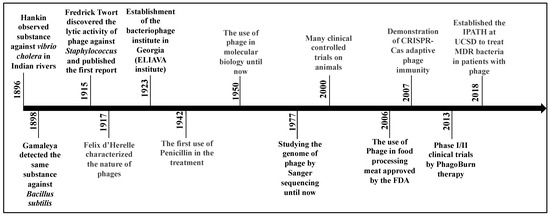 - Wittebole, X.; De Roock, S.; Opal, S.M. A historical overview of bacteriophage therapy as an alternative to antibiotics for the treatment of bacterial pathogens. Virulence 2014, 5, 226–235. [Google Scholar] [CrossRef] [PubMed]