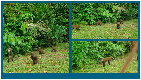 - Motsch, P.; Le Flohic, G.; Dilger, C.; Delahaye, A.; Chateau-Smith, C.; Couette, S. Degree of Terrestrial Activity of the Elusive Sun-Tailed Monkey (Cercopithecus solatus) in Gabon: Comparative Study of Behavior and Postcranial Morphometric Data. Am. J. Primatol. 2015, 77, 1060–1074. [Google Scholar] [CrossRef] [PubMed]