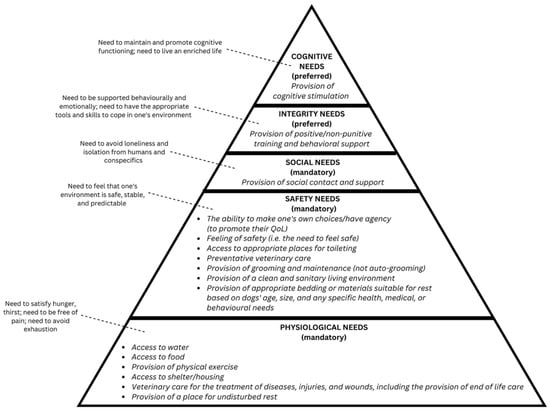 - Griffin, K.E.; Arndt, S.S.; Vinke, C.M. The Adaptation of Maslow’s Hierarchy of Needs to the Hierarchy of Dogs’ Needs Using a Consensus Building Approach. Animals 2023, 13, 2620. [Google Scholar] [CrossRef] [PubMed]