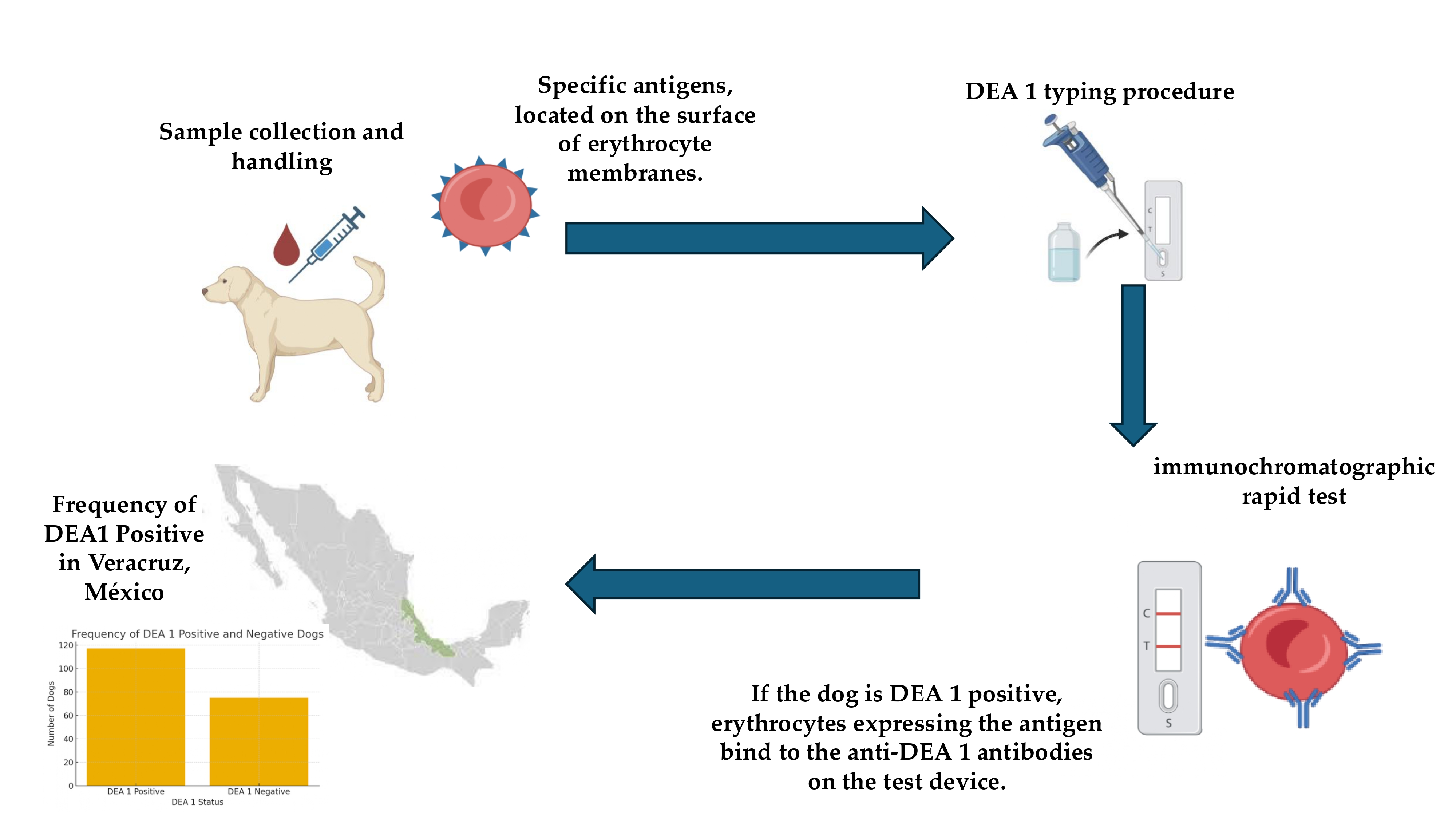 Arcos-Roa, C.A.; Ortíz-Carbajal, L.A.; Bravo-Ramos, J.L.; Sánchez-Otero, M.G.; Sánchez-Montes, S.; Bustos-Baena, A.; Palmeros-Exsome, C.; Bonilla-Rojas, S.; Agame-Lagunes, B. DEA 1 Prevalence and Theoretical Transfusion Mismatch Estimates in Dogs from Southeastern Mexico. Pets 2025, 2, 43. https://doi.org/10.3390/pets2040043