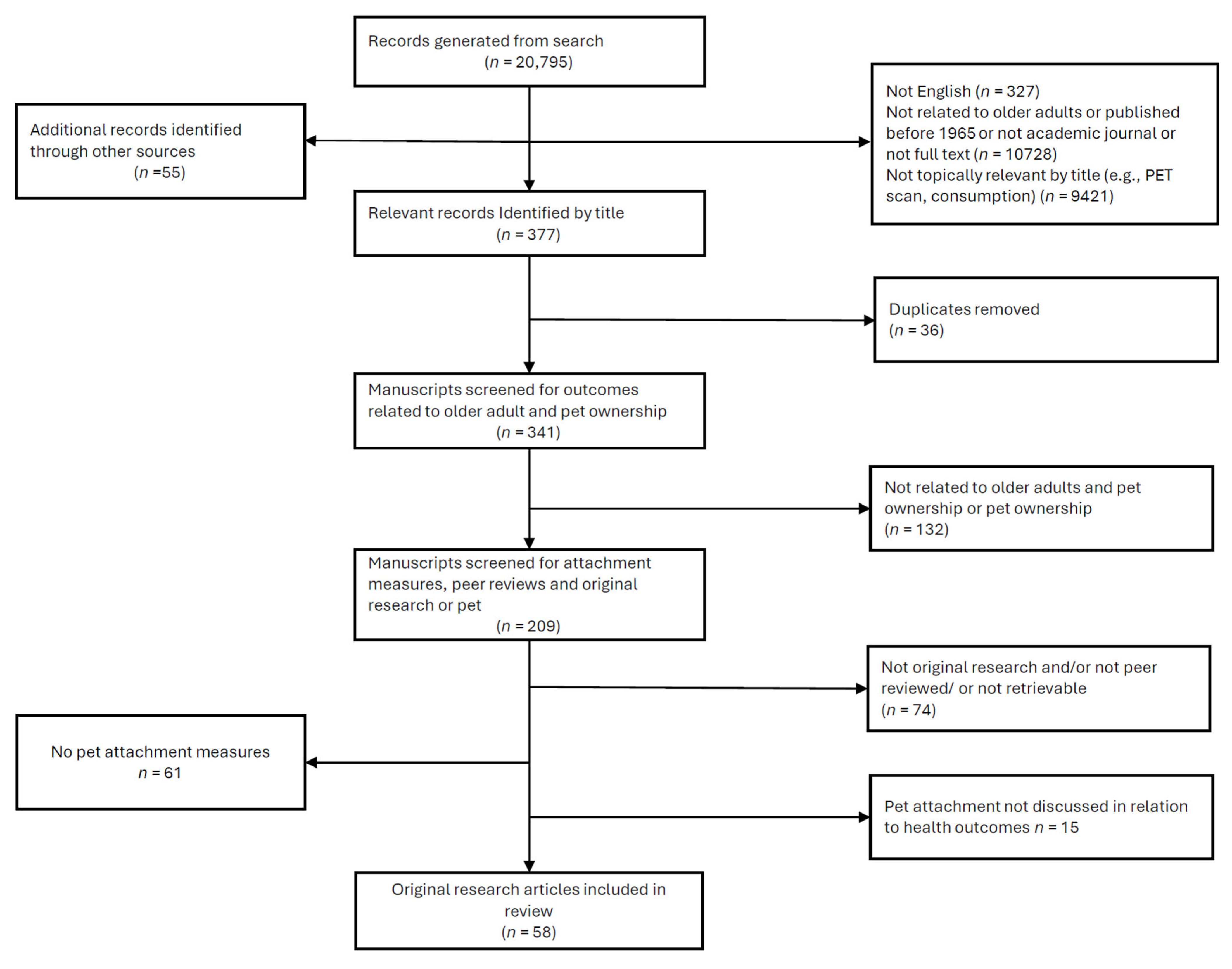 Chicago/Turabian StyleFriedmann, Erika, Nancy R. Gee, Mona Ramadan Abdelhamed Eltantawy, and Sarah Cole. 2026. "A Systematic Review of Pet Attachment and Health Outcomes in Older Adults" Pets 3, no. 1: 2. https://doi.org/10.3390/pets3010002