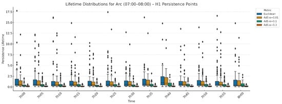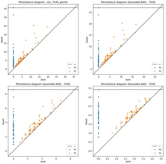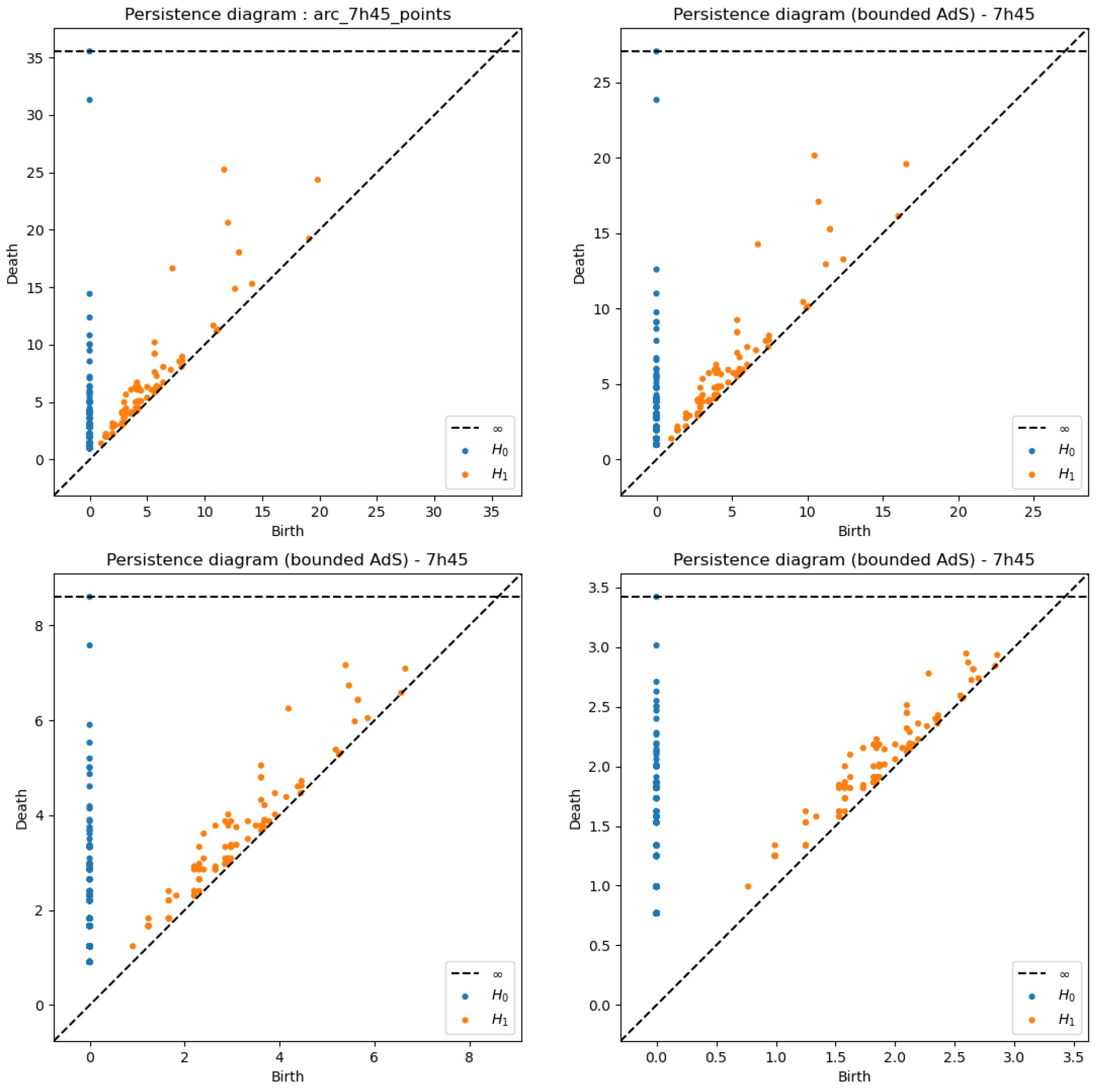 Persistence diagrams of the arc from 07h00 to 08h00 a.m. using the AdS metric with .