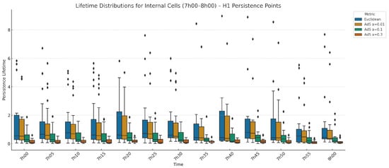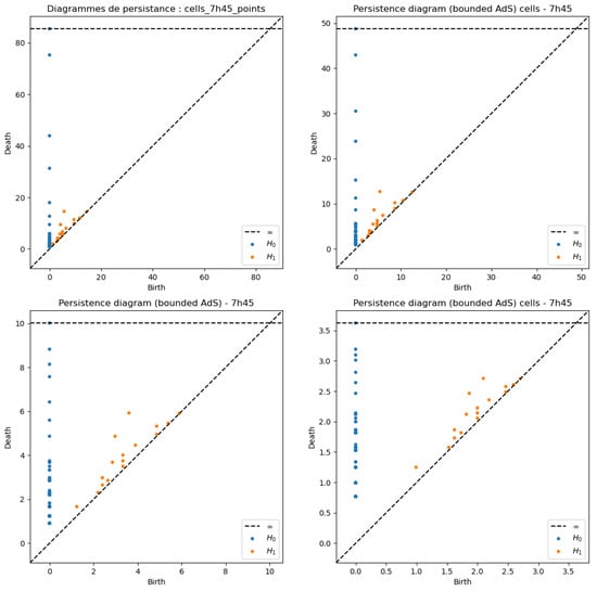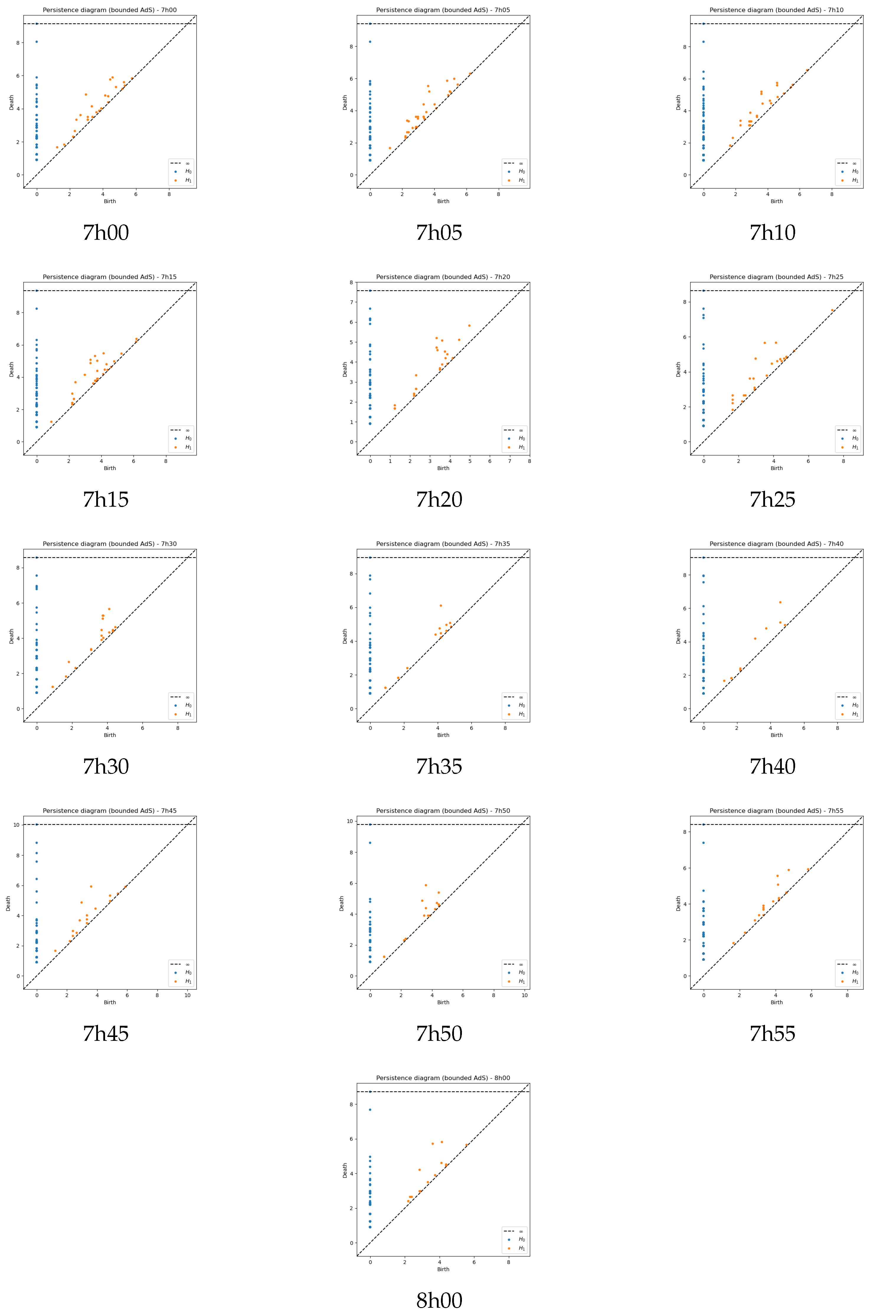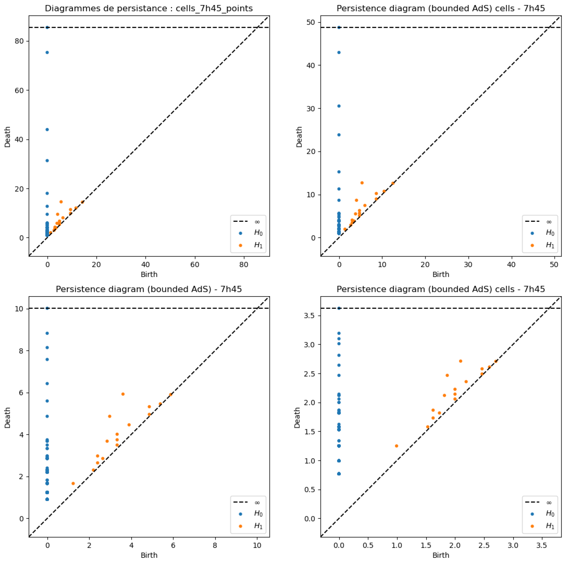 Persistence diagrams of the cells from 7h00 to 8h00 a.m. using the AdS metric with .