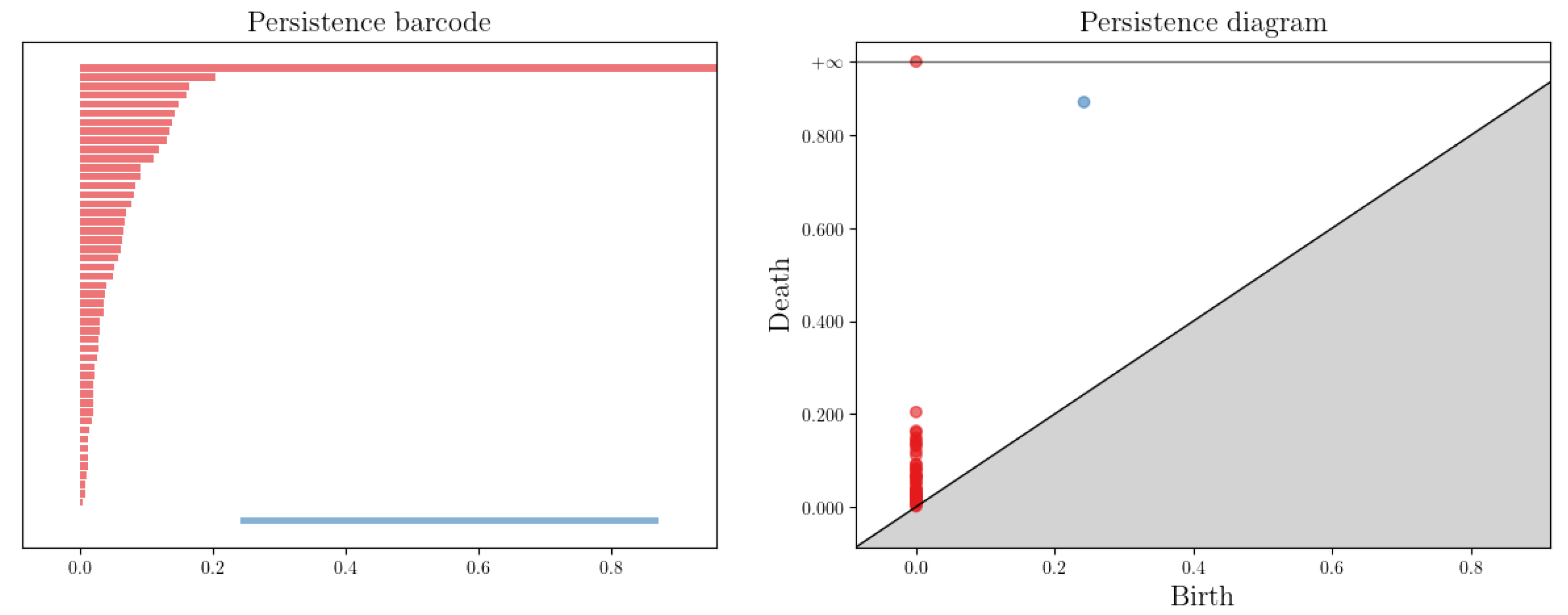 The birth and death of each topological feature is recorded in a persistence diagram see Figure 5, which is a multiset of points , where
