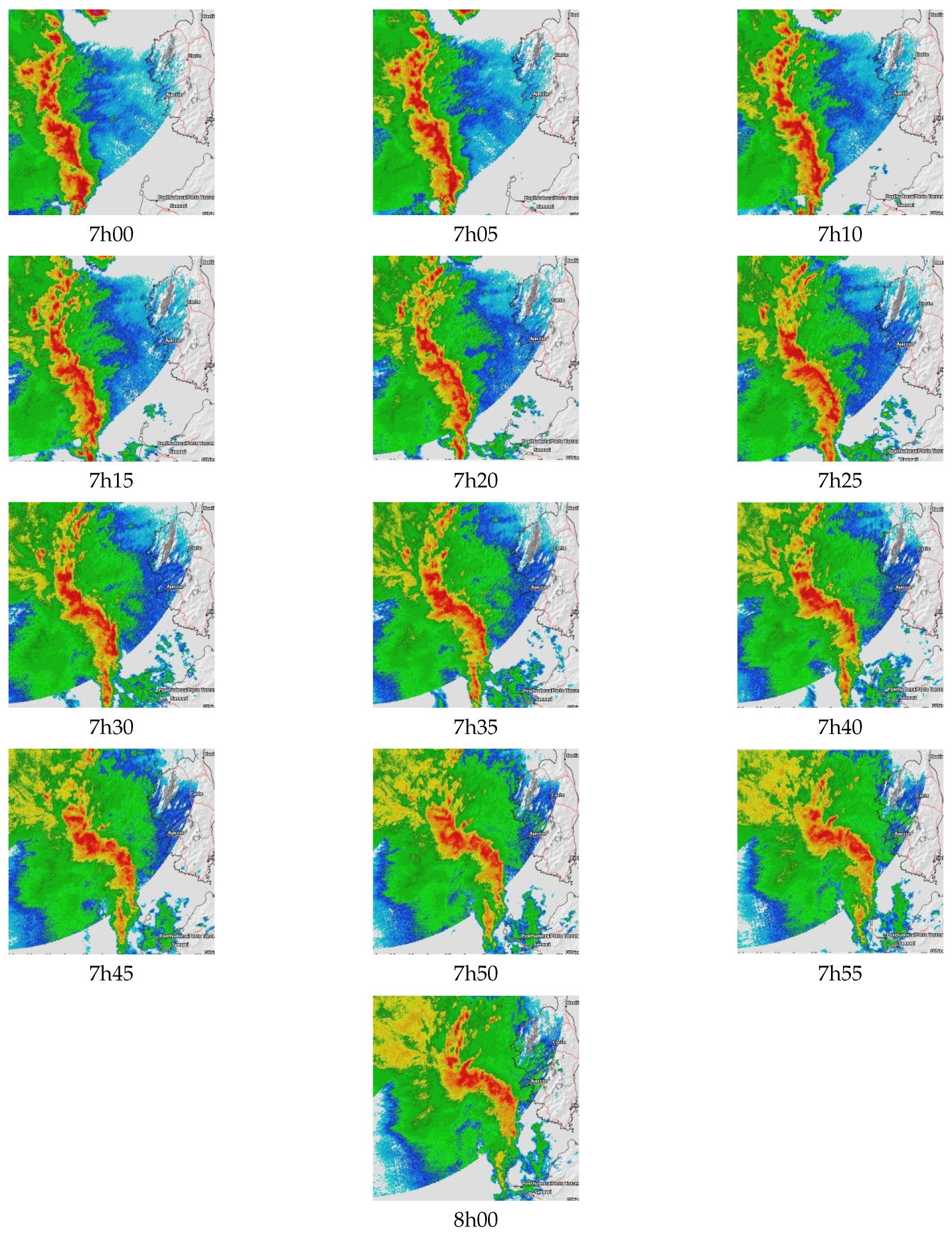 - Meteo-France. Données radar—Orage du 18 août 2022, Corse. 2022. Available online: https://meteofrance.com (accessed on 15 July 2025).