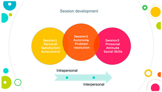 Each session will address factors whose content shares construct affinity, following a sequence from self-knowledge and integration of the self to autonomy, independence, and self-realization, mastery of the environment, and enhancement of prosocial competencies. In other words, it is a journey that progresses from intrapersonal to interpersonal skills.