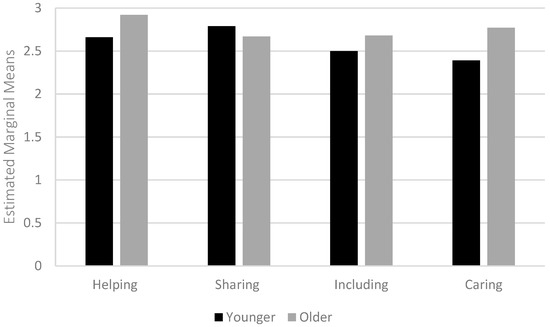 Subtype of prosocial behaviour × age group (self-reports).