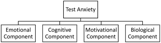 Test anxiety has been conceptualized with various components (see Figure 2). Initially, it was considered a univariate construct (Mandler & Sarason, 1952). Liebert and Morris (1967) introduced the distinction between emotionality (affective-biological) and cognitive components. Emotionality refers to physical symptoms such as muscle spasms, nausea, sweating, or increased heart rate, often triggered during or near examinations (Pekrun, 2006; Zeidner, 1998). The cognitive component involves negative thoughts about performance, feelings of unpreparedness, and fear of failure, which can occur long before or during the test, affecting preparation and learning (Putwain, 2007; Jerrim, 2023).
