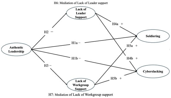 (1) Background: Workplace procrastination leads to missed deadlines and financial losses, necessitating a deeper understanding of its risk factors and inhibitors for effective interventions. This study aims to bridge the significant gap in the literature regarding the effects of Authentic Leadership (AL) on workplace procrastination behaviors, including soldiering and cyberslacking. AL, as a positive leadership style, is proposed as a key factor in mitigating procrastination by fostering a supportive work environment. Specifically, this research examines how AL impacts procrastination through two psychosocial risk factors—lack of supervisor support and lack of workgroup support—which are hypothesized to mediate this relationship. (2) Methods: Data were collected from 738 employees (62.9% women) who completed a survey. Partial least squares structural equation modeling was conducted to explore the direct relationship between AL and procrastination, and indirect relationships through support. (3) Results: The findings indicate that AL negatively impacts procrastination behaviors, with stronger effects on soldiering compared to cyberslacking. AL is also negatively associated with perceptions of a lack of support from both leaders and workgroups, with a stronger influence on leader support. Both lack of leader and workgroup support significantly predict soldiering but not cyberslacking. (4) Conclusions: This study highlights AL’s potential to mitigate workplace procrastination by reducing perceptions of insufficient support. Organizations should focus on AL training to promote leader authenticity and supportiveness while fostering strong support networks within workgroups to enhance productivity and reduce procrastination behaviors. These findings also contribute to understanding AL’s role in addressing workplace counterproductive behaviors.