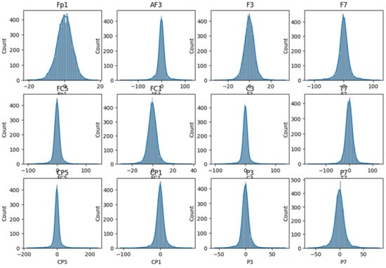 Figure 5 shows that EEG signal data provides a complete perspective of brain activity by measuring a variety of parameters across multiple channels. Every row denotes a particular observation or incident, and every column denotes a different EEG channel. These channels record electrical activity from certain brain regions, offering important information about mental health conditions. Parameters like Fp1, AF3, F3, F7, FC5, FC1, C3, T7, CP5, CP1, and so forth are among the 33 columns of features that are taken from EEG signals.