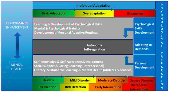 Additionally, athletes’ mental health may deteriorate in response to excessive psychological demands related to training and competition. This highlights the importance of monitoring the evolution of athletes’ mental health and responding to their needs—an effort that relies heavily on coaches’ mental health literacy. Furthermore, athletes themselves should be educated to recognize early signs of psychological distress or mental health issues.