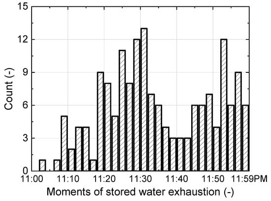 Distribution of the time when chilled water in the storage tank exhausted early.