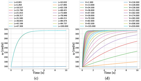 In this case-study, we analyze a system in which the nonlinear load has resistive–inductive behavior. The main claim used for the analysis is Corollary 1. Our aim is to find the minimal value of D which bounds from above the expression (19), which is derived from the active power of the system. We consider a general load model, of which the resistance and inductance are given by , respectively, and the voltage is V. The nominal power of the synchronous machine is again and the nominal frequency is . The values of the parameters may vary depending on the scale of the system, as will be presented in the numeric results section. The active power of the load is given by