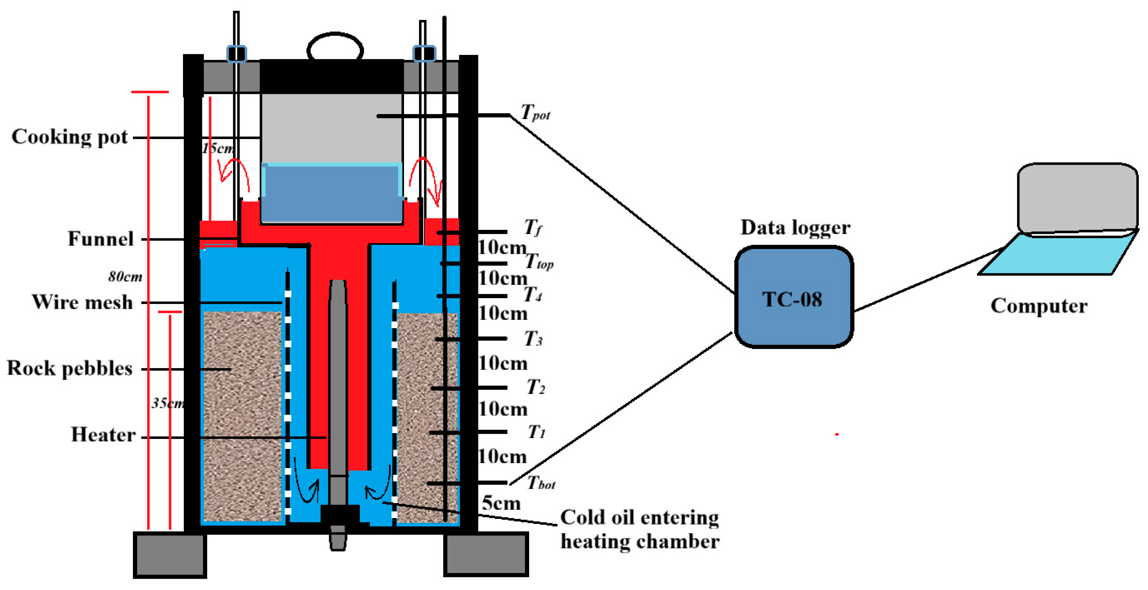 | Height of oil/rock bed heat storage tank (±0.05 cm) | 80.0 cm |