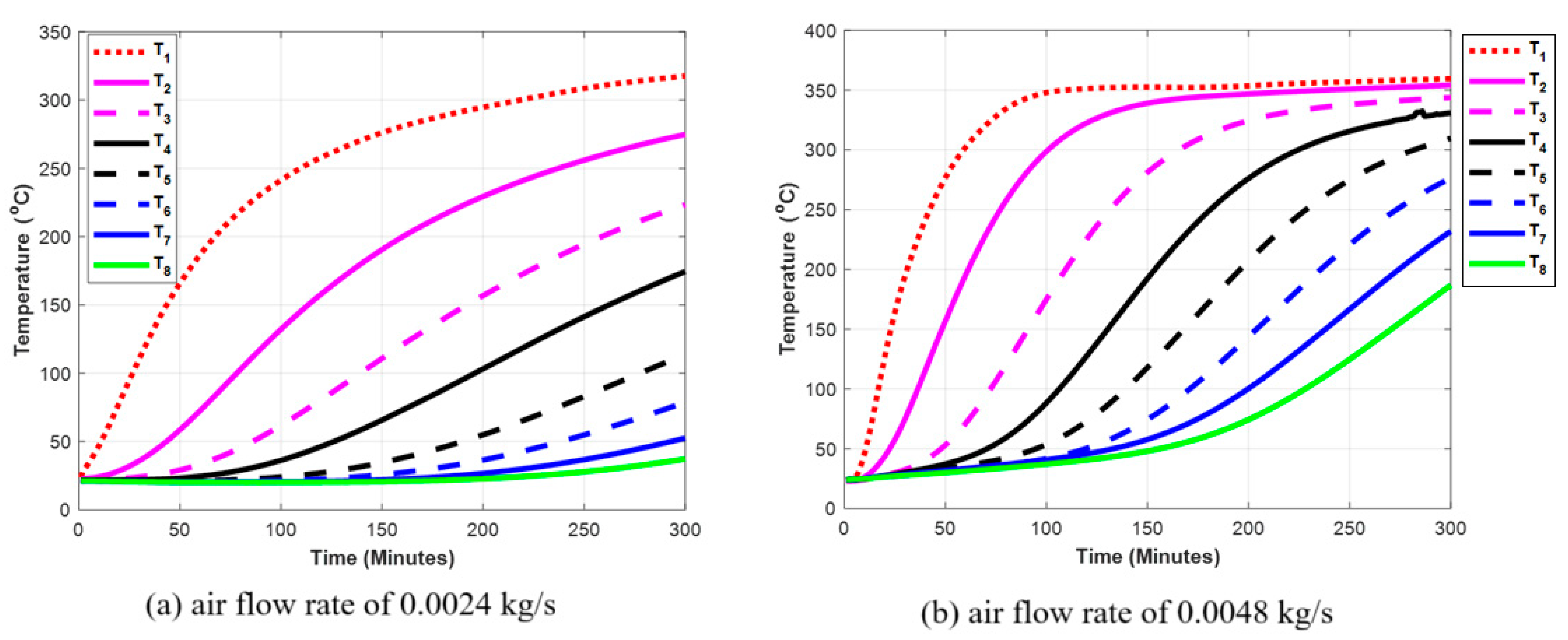 3.1. Temperature Profiles of an Air–Rock Pebble Bed Charged with Different Air Flow Speed