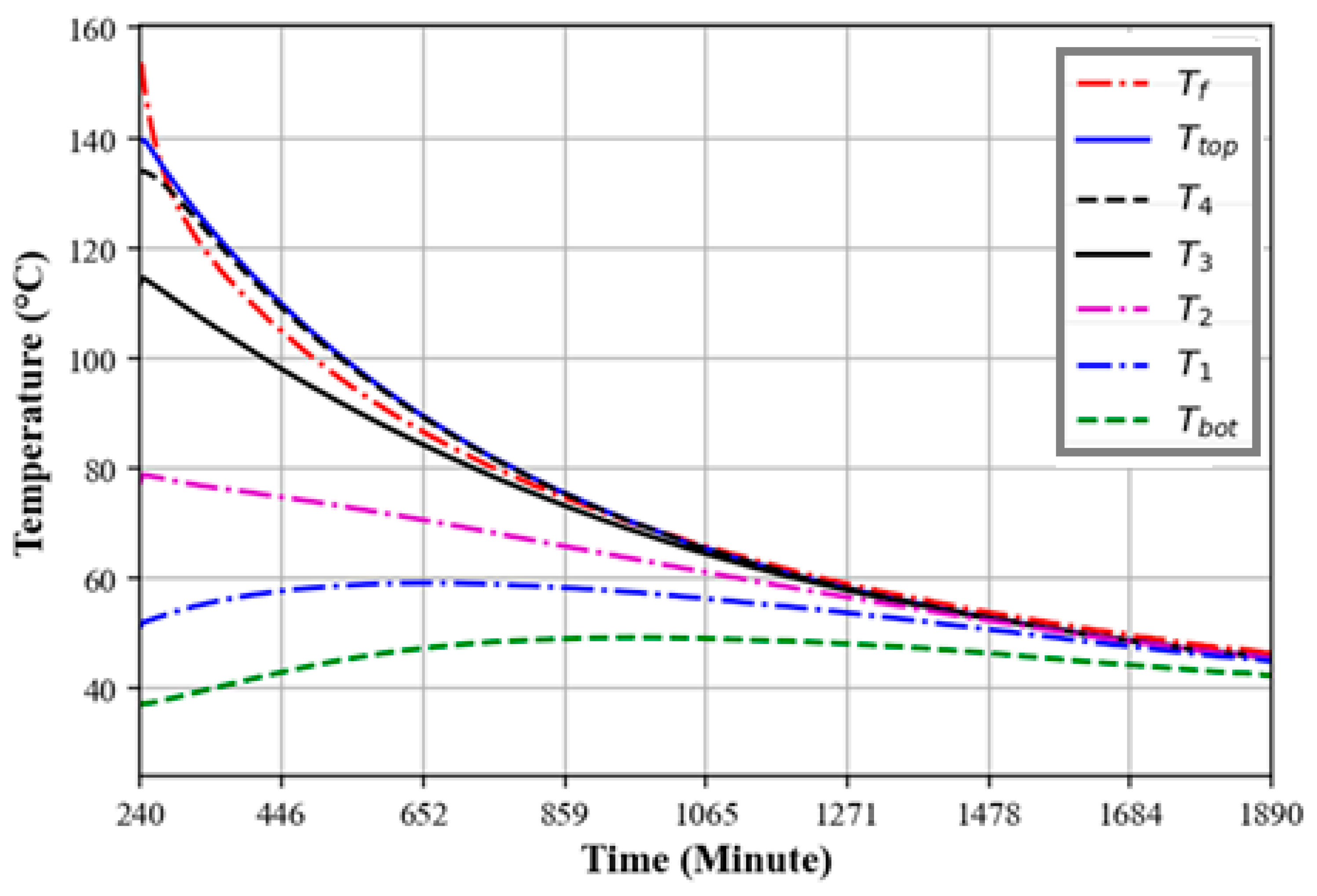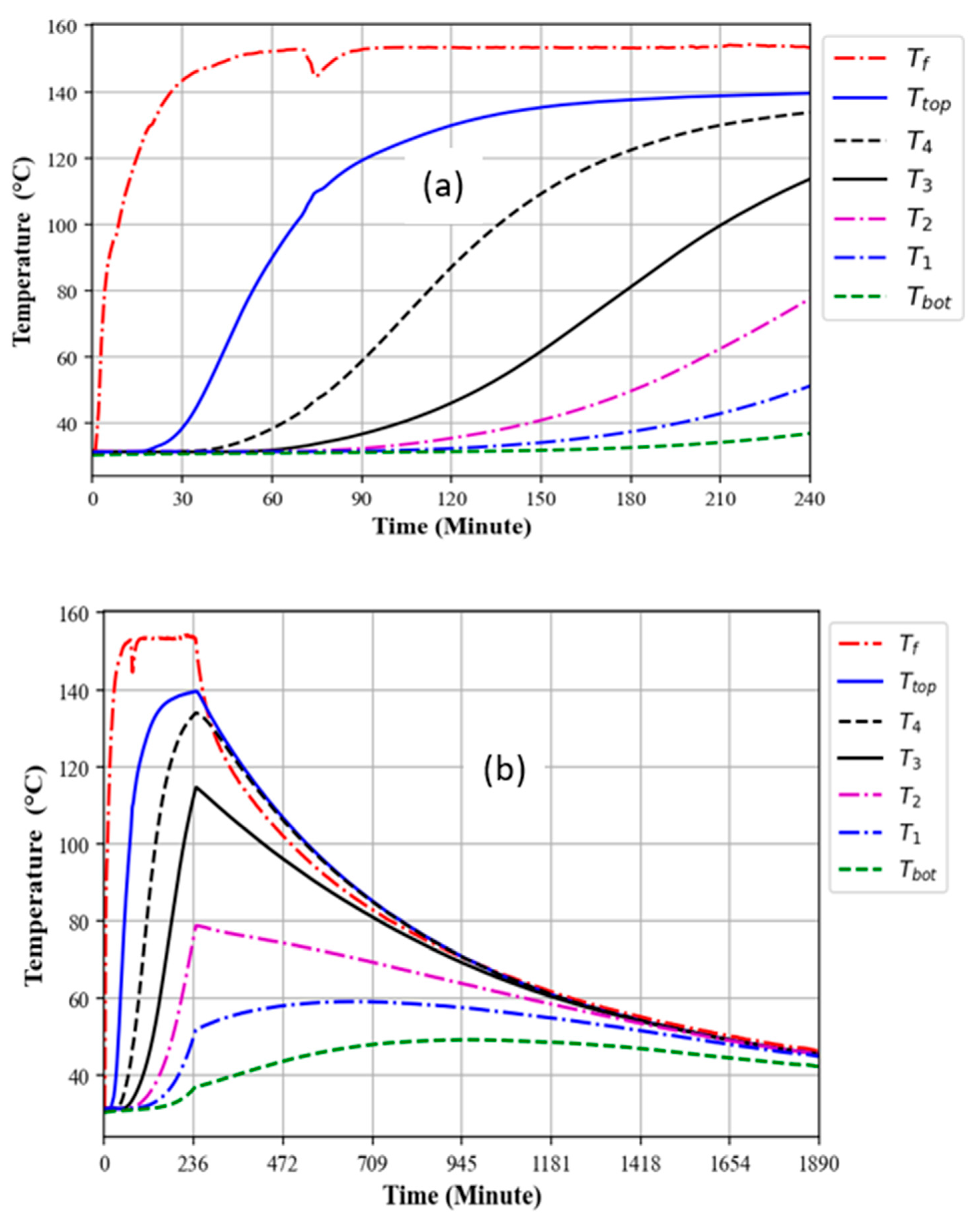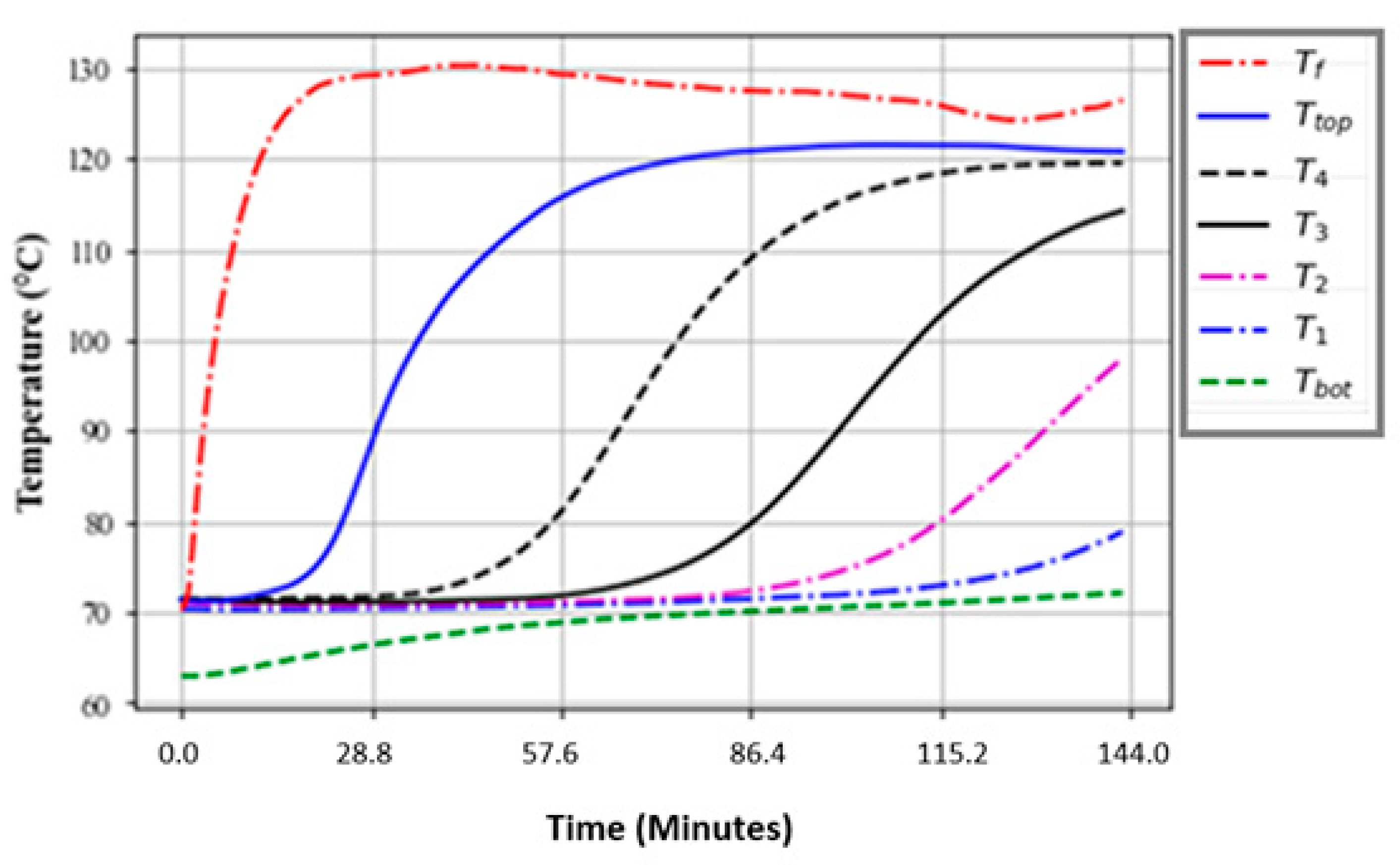 3.2. Temperature Profiles of an Oil-Only TES System During the Charging Process