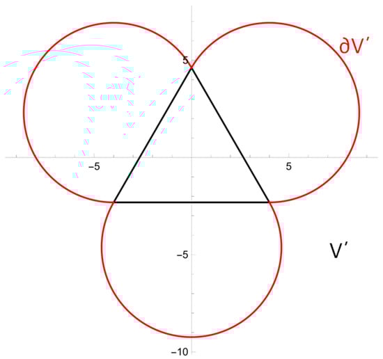 Baganis and Hadjinicolaou used Kelvin’s inversion to study a problem in potential theory in a 2D non-convex domain using Dirichlet [] or Neumann [] boundary conditions. The non-convex body (its boundary is denoted with ) has a trefoil shape (Figure 8) and the exterior of the body (denoted as ) is the domain in which the solution had to be derived. If is the unknown potential, the equation which has to be satisfied is