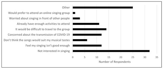 The positive motivations given by people who said that they would attend singing groups ranged from enjoyment of singing to keeping active and meeting new people (Figure 6).