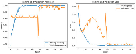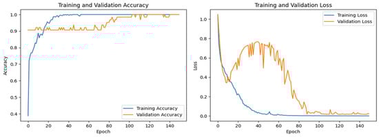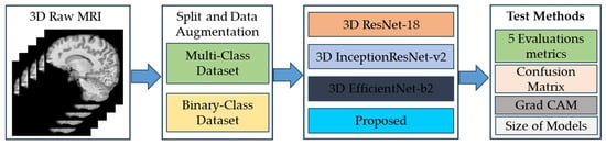 Based on the research results described in [33,37], we selected 3D ResNet-18, InceptionResNet-v2, and EfficientNet-b2 to compare with our proposed model (Figure 3). Our model is considered to have a much lighter structure, as a result of the optimization process in the proposed model compared to traditional models. In addition, we observed during the optimization of the proposed model that as the number of layers of the model increases, it can easily overfit the training data. This observation allows our proposed model to be much smaller in size but still achieve the same performance as the models with large structures. All networking was implemented with Python v3.12.5, TensorFlow framework v.2.18.0 and trained on a PC with an Intel® Xeon (R) E5-2650 Processor paired with a NVIDIA Quadro P2000 GPU.
