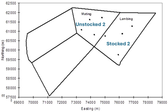 Location (●) of exclosure plots in Unstocked 2 and Stocked 2 paddocks.