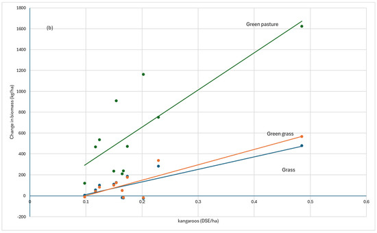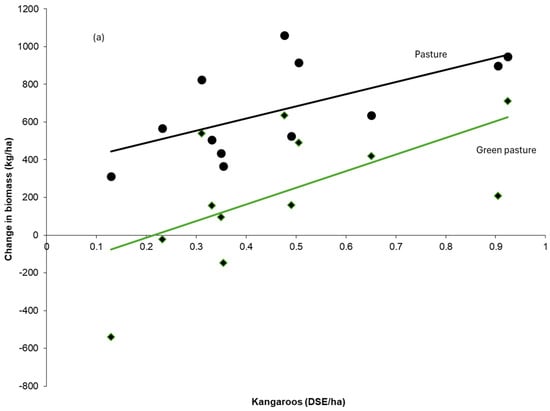 The impact of red kangaroos on the pasture layer was also studied [30]. However, the study used a very limited number of trial plots in very large paddocks (6900 ha) and mainly showed that kangaroos selected grasses in both cultivated and natural sites after the experimental paddocks were destocked. The authors concluded that red kangaroos reduced the accumulation of grass biomass on the plots and so added to rangeland degradation (or negated attempts at restoration). However, they only looked at biomass, not at the abundance of individual pasture species. Red kangaroos’ preference for grasses is well known [96], and lowered biomass does not necessarily equate to loss of diversity or mortality of individual grasses present. In fact, moderate grazing stimulates growth and new shoots [97,98,99] and might be an integral part in the survival of grass and maintenance of the pasture layer. Kangaroo grazing did not significantly impact on forb growth and biomass, the preferred forage of sheep [39,96]. Norbury et al. [30] equated regeneration with the accumulation of biomass, which is not necessarily the same as the recolonization of bare soils. A lack of quantitative data on the population dynamics of pasture layer species was admitted. The authors resorted to unpublished photographic evidence to ‘clearly’ infer lower recruitment and survival of grass species in the grazed plots.