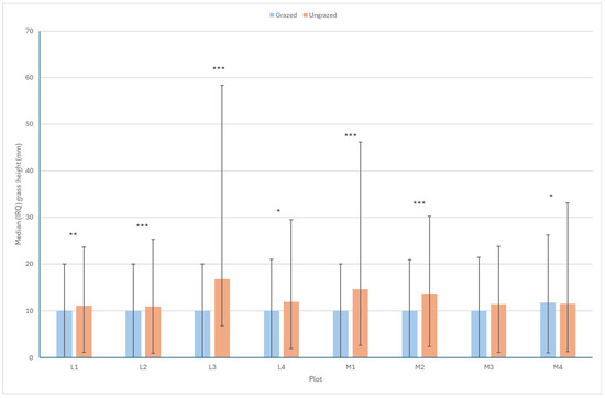 The abundance, height, and greenness of plants in animal exclosures and adjacent grazed plots (Figure 5), established 10 years prior to this study [93], were recorded on a 15-day basis to examine short-term changes in vegetation in grazed and ungrazed conditions.