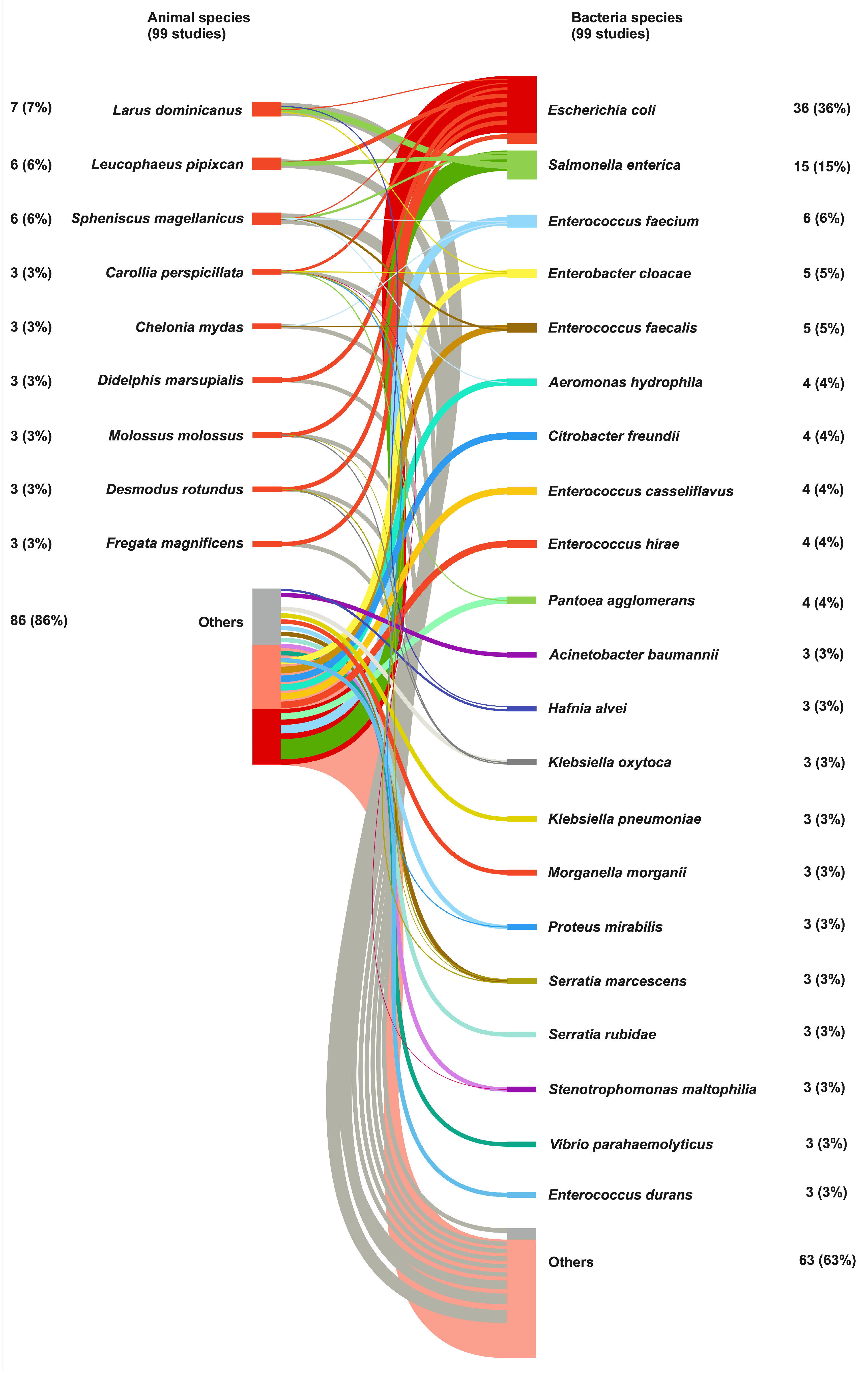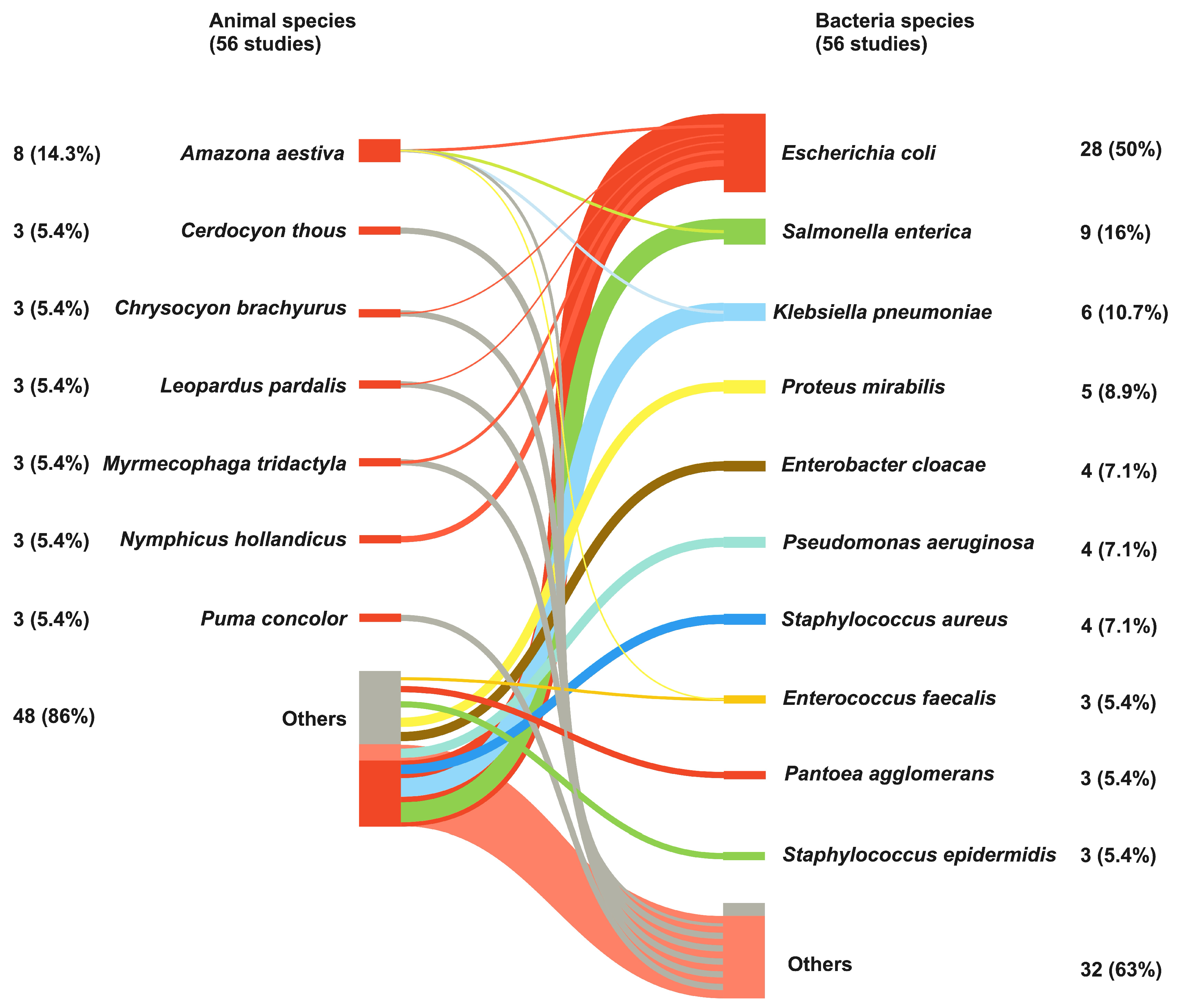 3.1.2. Type of Environment, Animals, and Bacteria Studied