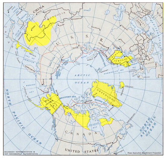 Map of the Arctic and Sub-Arctic regions indicating areas of historical fish skin and fish remnant use. Library of Congress, Washington, DC, USA.