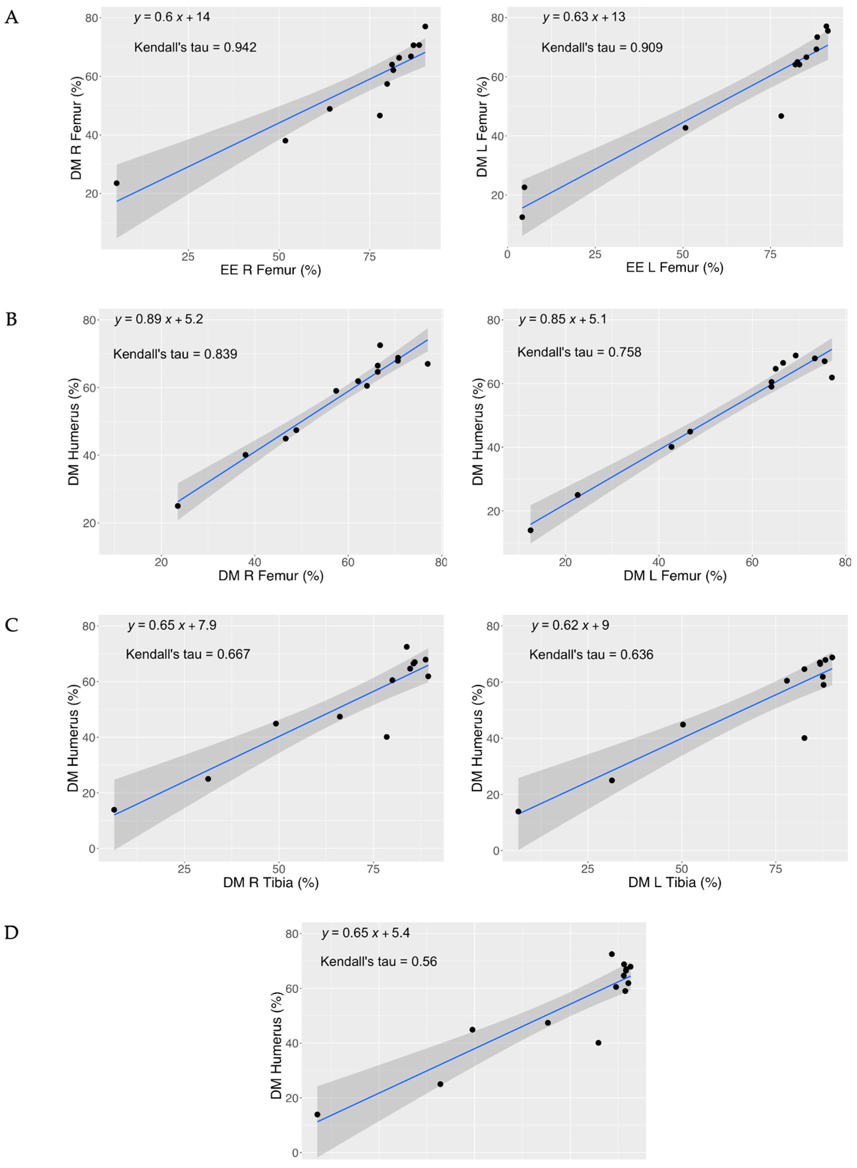| Tibia L | τ | - | - | - | 0.321 | 0.657 | 0.687 | 0.443 | |