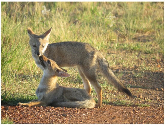 - Luengos Vidal, E.M.; Caruso, N.; Martínez, S.D.; Casanave, E.B.; Lucherini, M. Adaptarse o morir: Estrategias individuales y poblacionales claves para la supervivencia en ambientes antropizados del zorro pampeano. In Proceedings of the XXX Jornadas Argentinas de Mastozoología: Libro de Resúmenes, Bahía Blanca, Argentina, 14–17 November 2017; Sociedad Argentina para el Estudio de Mamíferos: Bahía Blanca, Argentina, 2017. [Google Scholar]