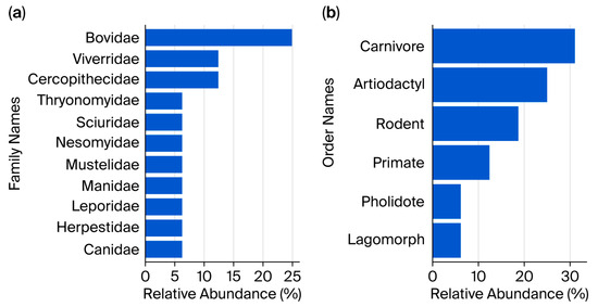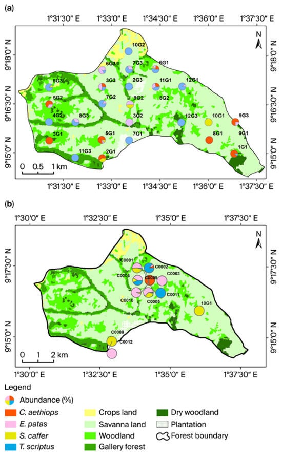Chicago/Turabian StyleAyegnon, Dakpo T. D., Georges Nobimè, Fortuné Azihou, Marcel Houinato, and Chabi A. M. S. Djagoun. 2026. "Seasonal Variation in the Diversity, Abundance, and Spatial Distribution of Terrestrial Mammals in the Pénéssoulou Classified Forest" Wild 3, no. 1: 2. https://doi.org/10.3390/wild3010002