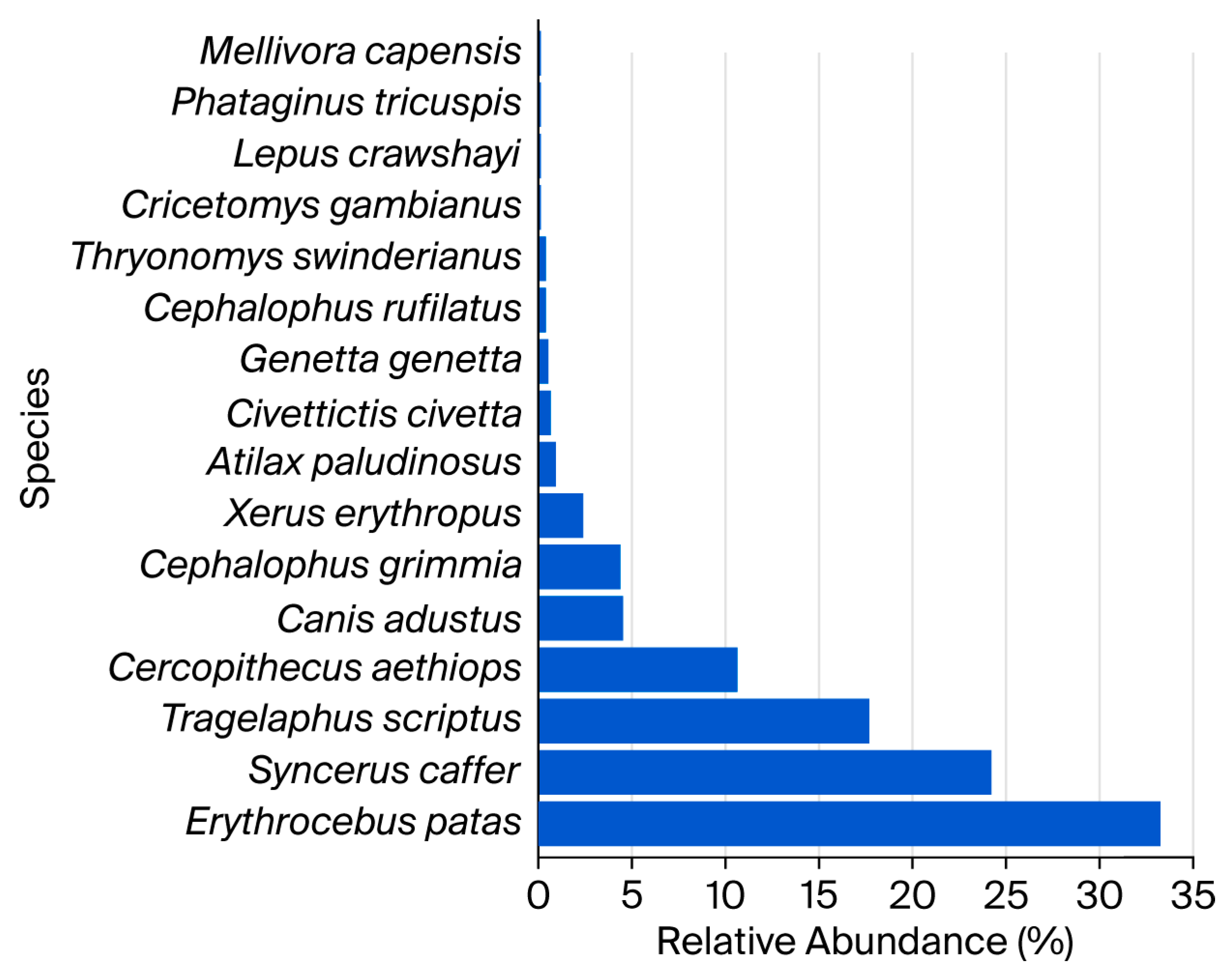 3.4.2. Mammal Species Abundance Distribution Across Vegetation Types