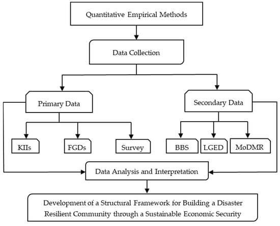 Disasters disrupt socio-economic conditions and damage fragile socio-economic infrastructures, especially in vulnerable communities experiencing different inequalities in the coastal regions of Bangladesh. Establishing economic security is a key solution for the development of communities that are resilient to disasters and sustainable in the long term. Disaster risk mitigation-focused sustainable economic security for building disaster resilient communities is initiated within the domestic sphere, among family members, and is associated with various societal levels, including neighborhoods, educational institutions, places of employment, places of worship, and public places. Therefore, this empirical research was conducted, from study area selection and data collection in the coastal region of Bangladesh to the data analysis.