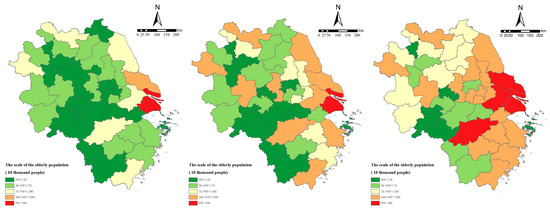 Population aging, as an important accompanying phenomenon in regional economic and social development, reflects deep changes in the labor supply and consumption structure through its scale evolution and spatial distribution. As one of the most prominent regions in China’s urbanization and aging process, the spatiotemporal changes of the elderly population in the Yangtze River Delta urban agglomeration provide a typical sample for analyzing the coupling mechanism between economic development and population structure transformation (Figure 5).