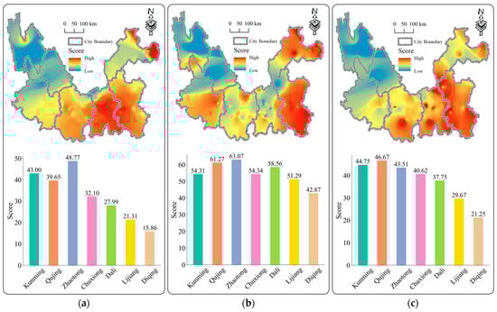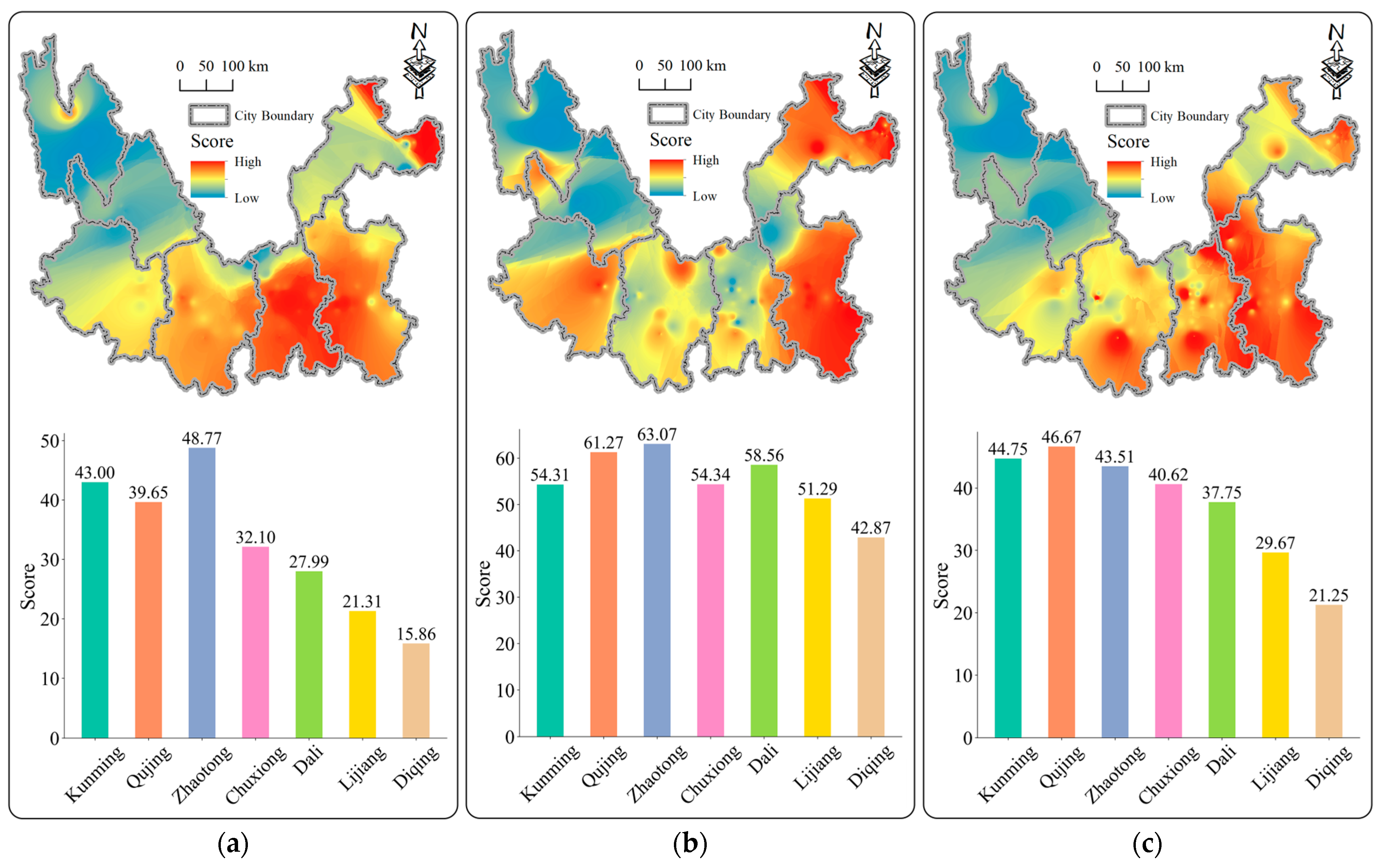 - Regions such as northeastern Zhaotong show stability across different indicator models, reflecting a relatively balanced “social–ecological” synergistic system. In contrast, cities such as Dali and Qujing exhibit differences across indicator models, suggesting that their development is constrained by the lack of coordination between social and ecological factors.