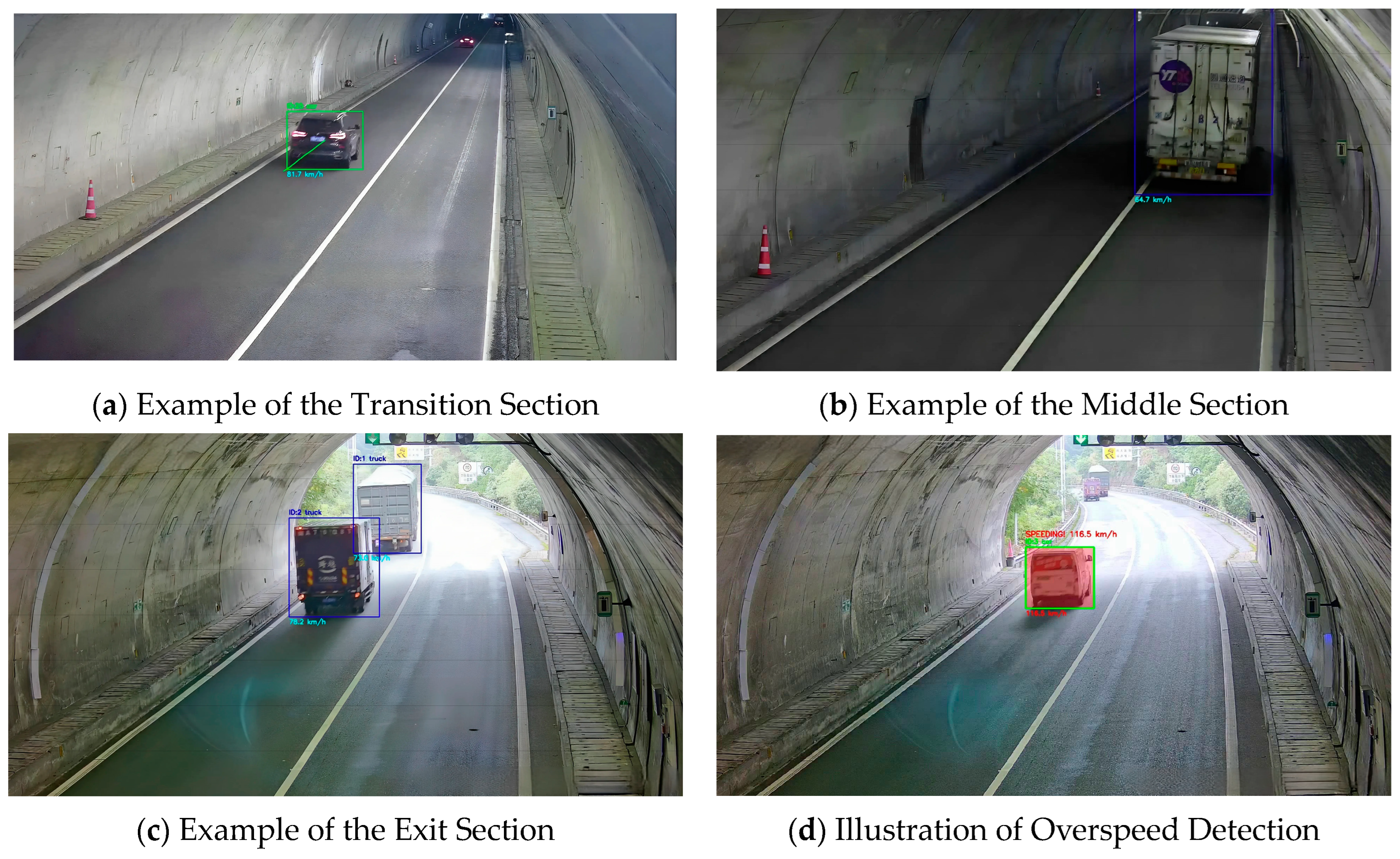 | Enhanced YOLOv5s + DeepSORT [17] | YOLOv5s + Swin Transformer | DeepSORT | Highway/Tunnel | Absolute error: 1–8 km/h, RMSE: 2.06–9.28 km/h | 2024 |