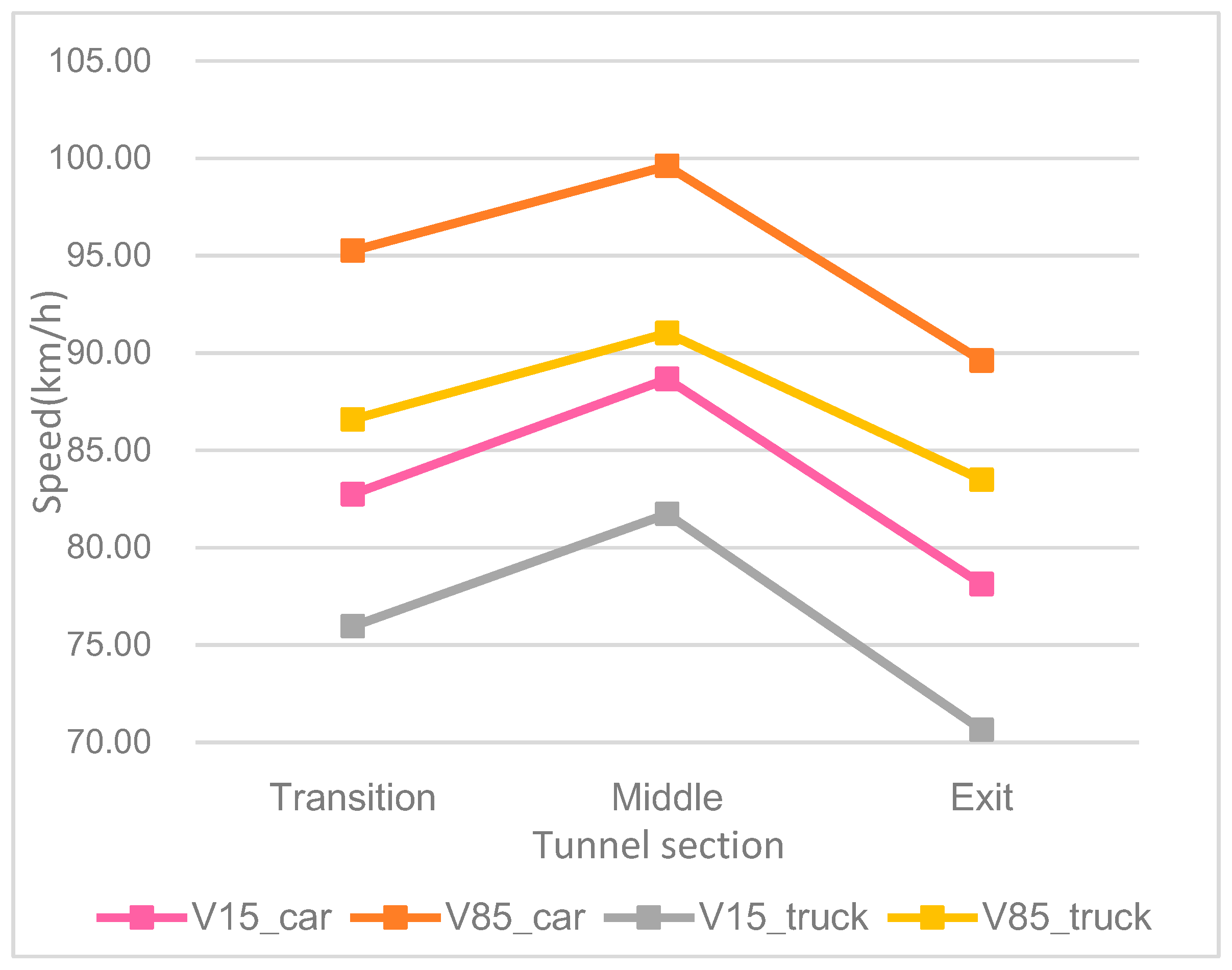 3.3.2. Speed Characteristics in Different Tunnel Sections